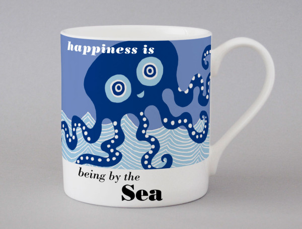 This bone china mug would make a great gift for someone who loves being by the sea featuring an illustration of mid-century style fish.